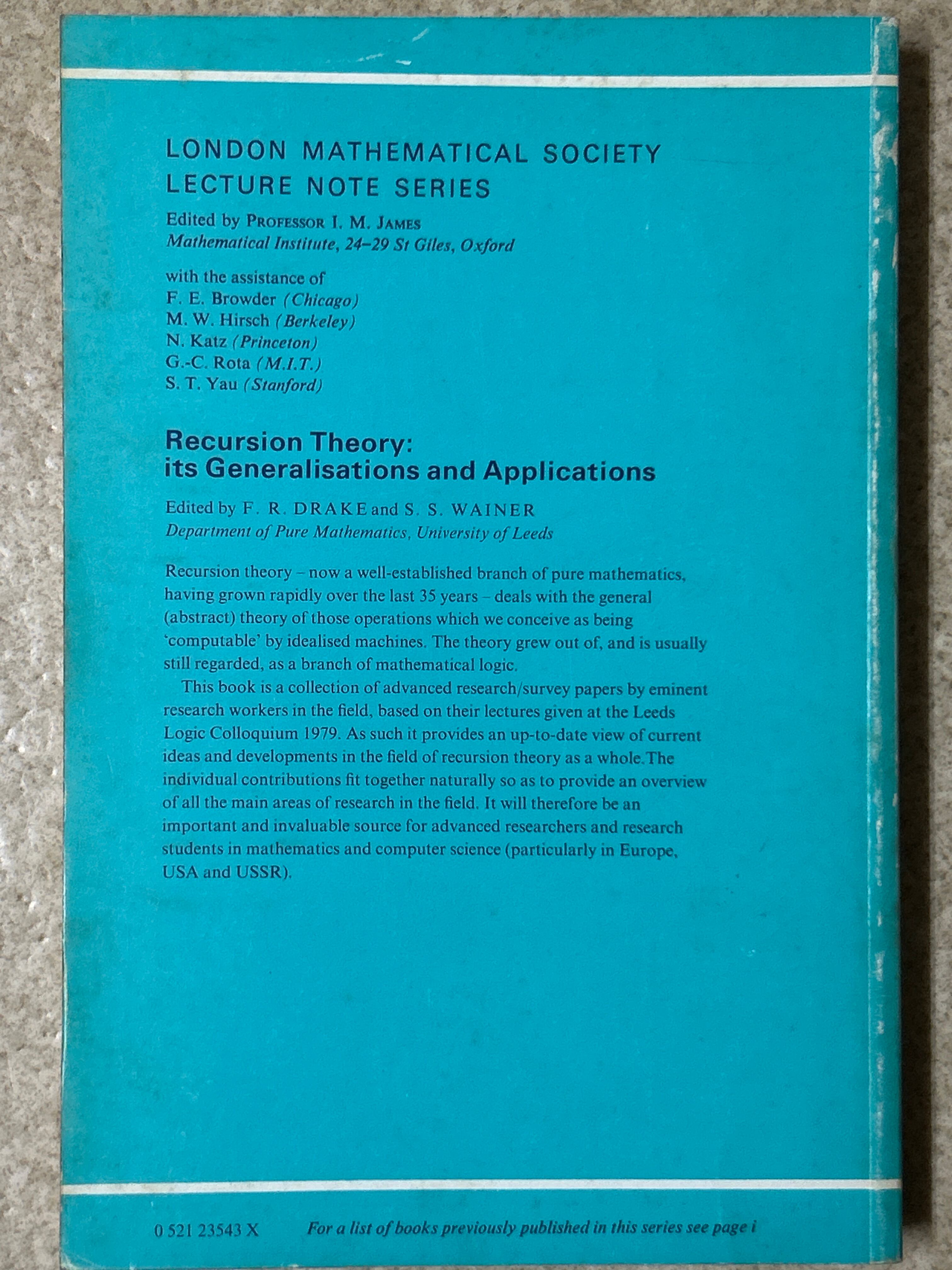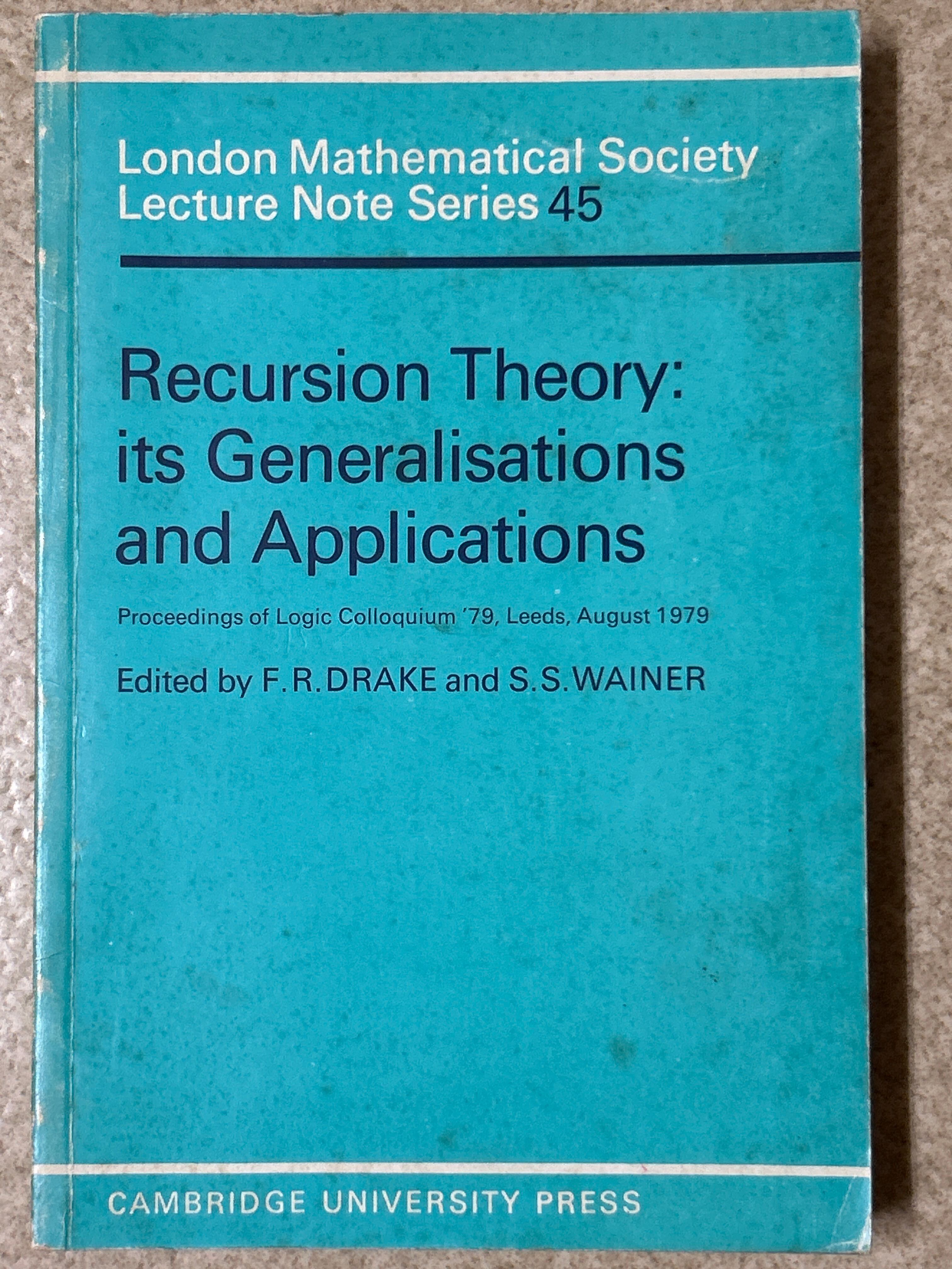Recursion Theory: Its Generalisations and Applications. (London Mathematical Society Lecture Note Series 45)(PB) /DRAKE・WAINER〈39474〉