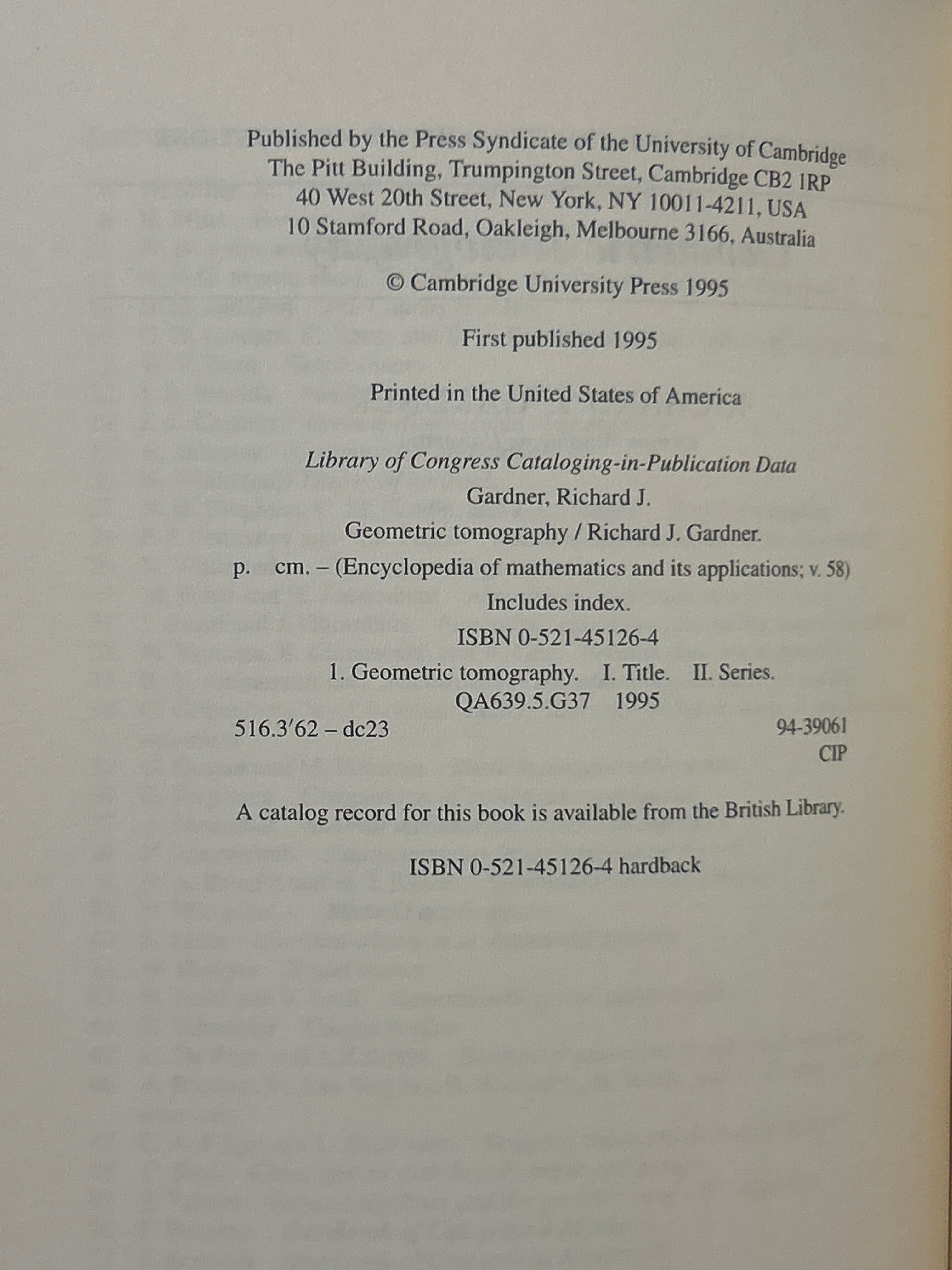 Geometric Tomography. (Encyclopedia of Mathematics and Its Applications 58) /GARDNER(R.J)〈37253〉