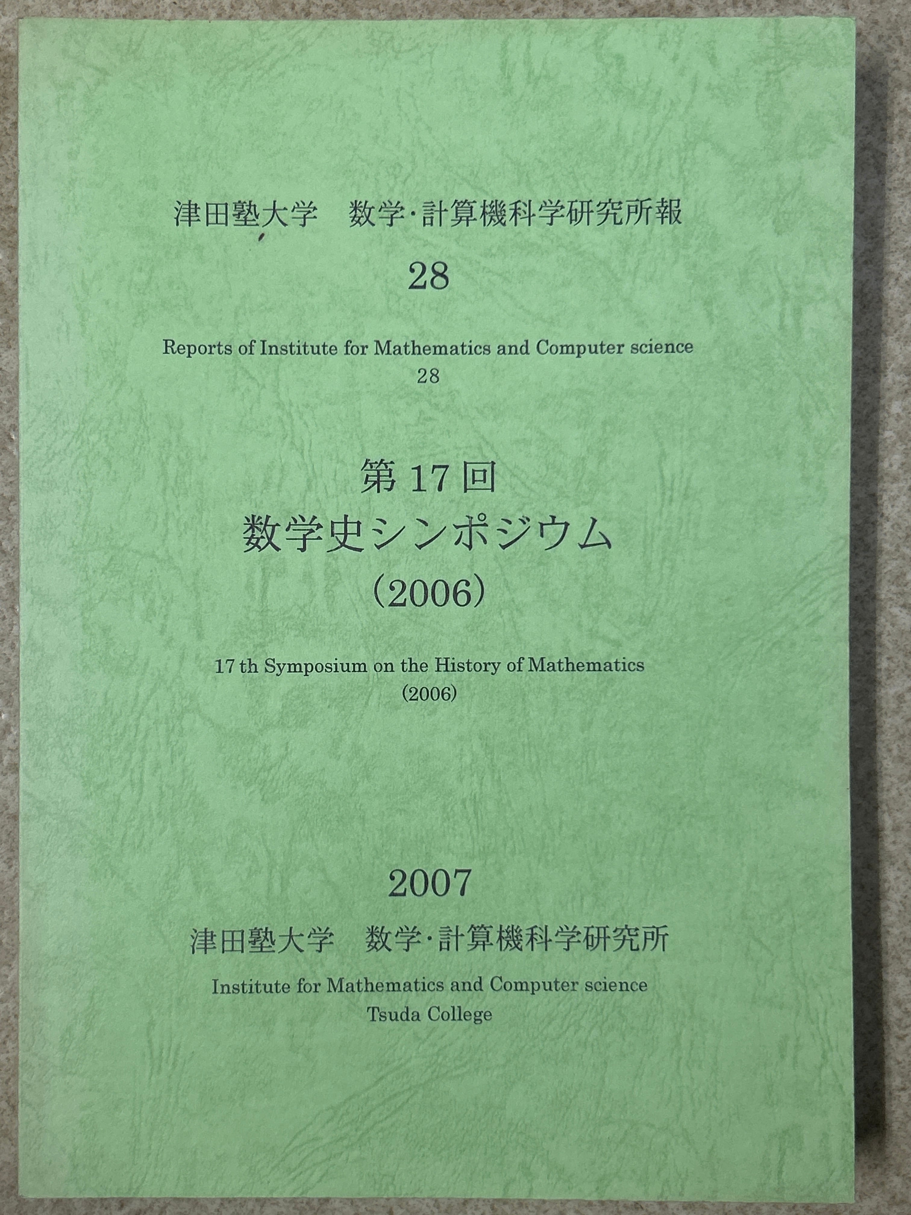 津田塾大学 数学・計算機科学研究所報28 第17回数学史シンポジウム(2006) /〈8902〉