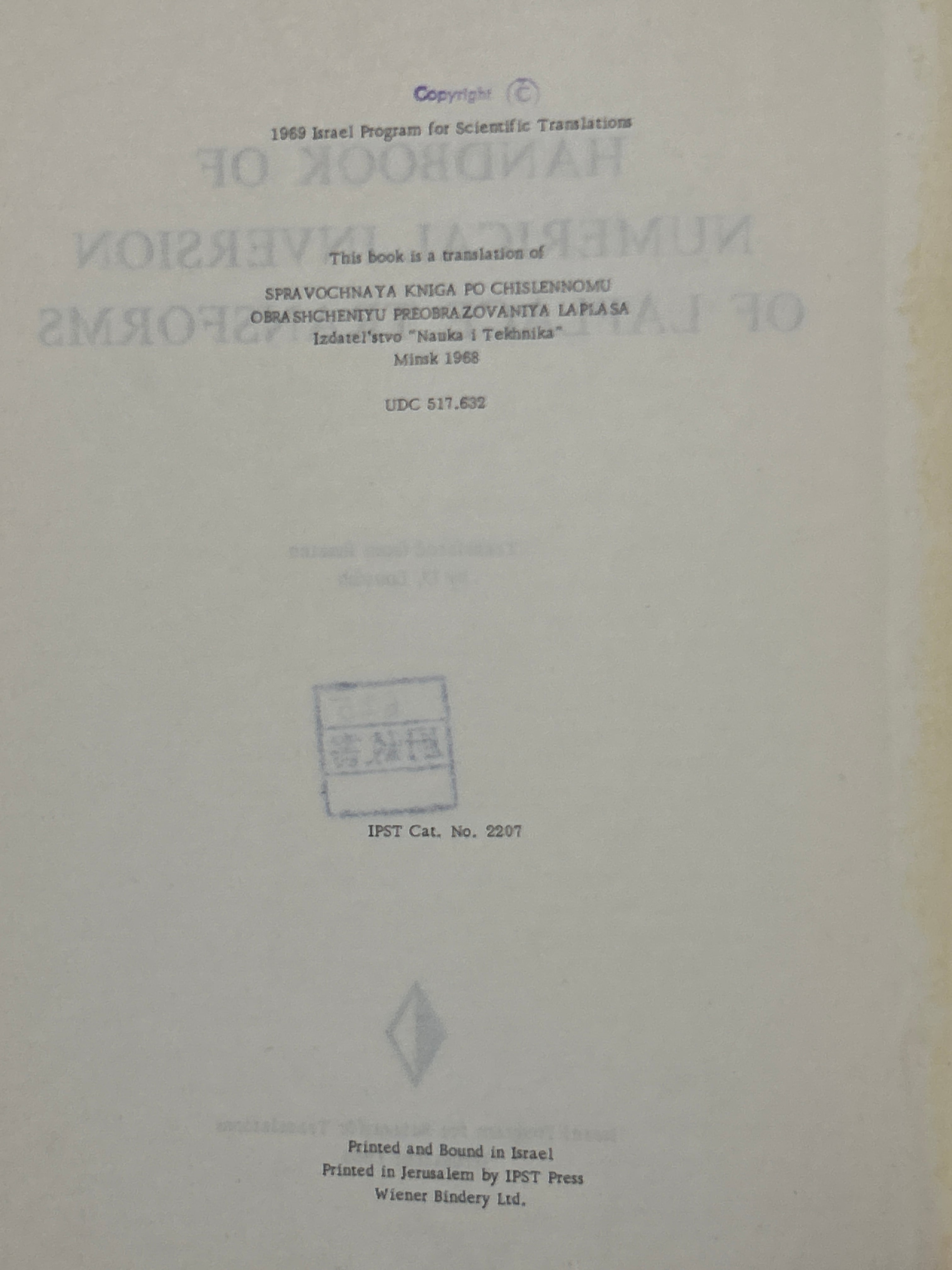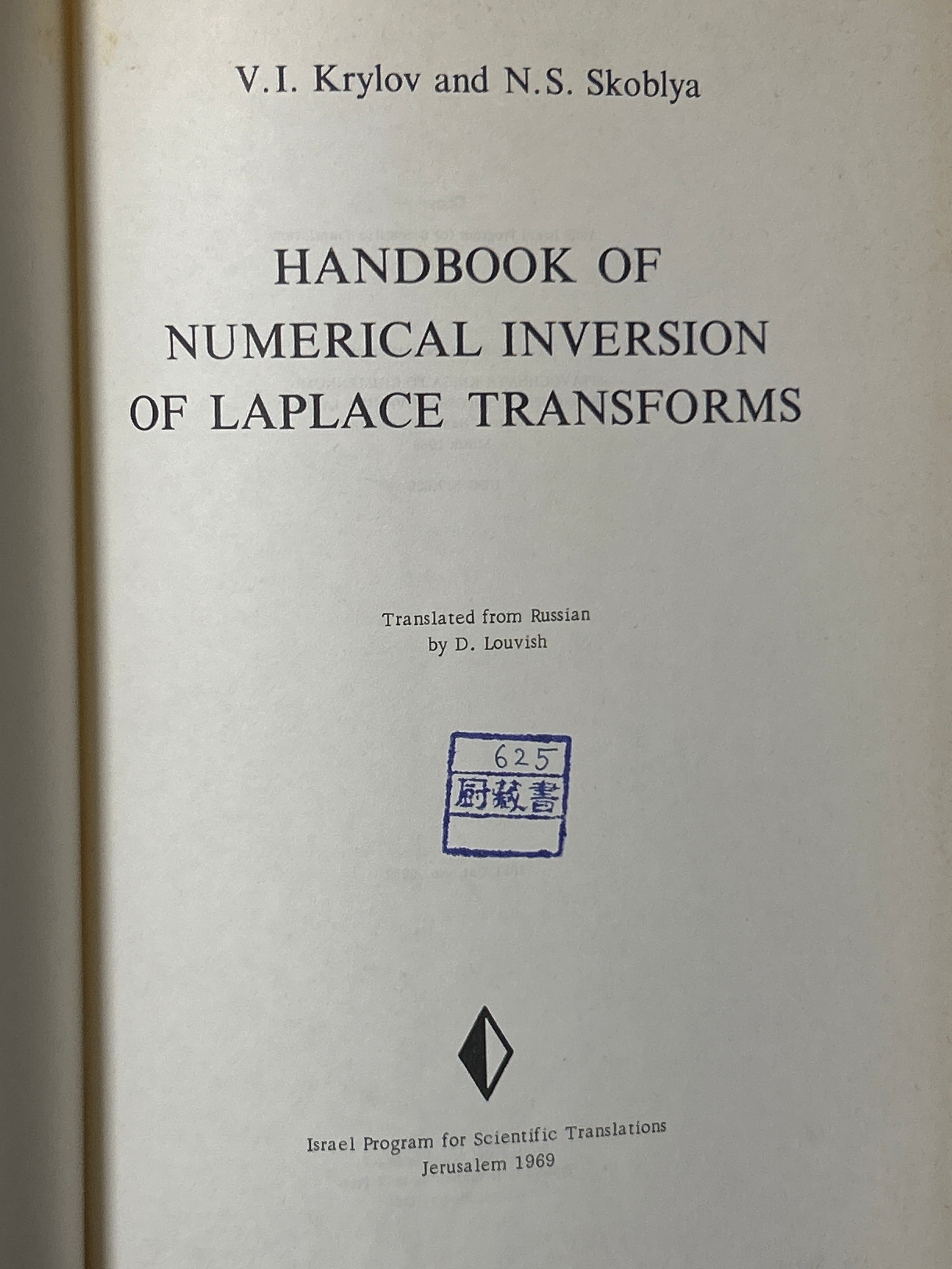 Handbook of Numerical Inversion of Laplace Transforms. /KRYLOV・SKOBLYA〈35374〉 | 四方堂書店
