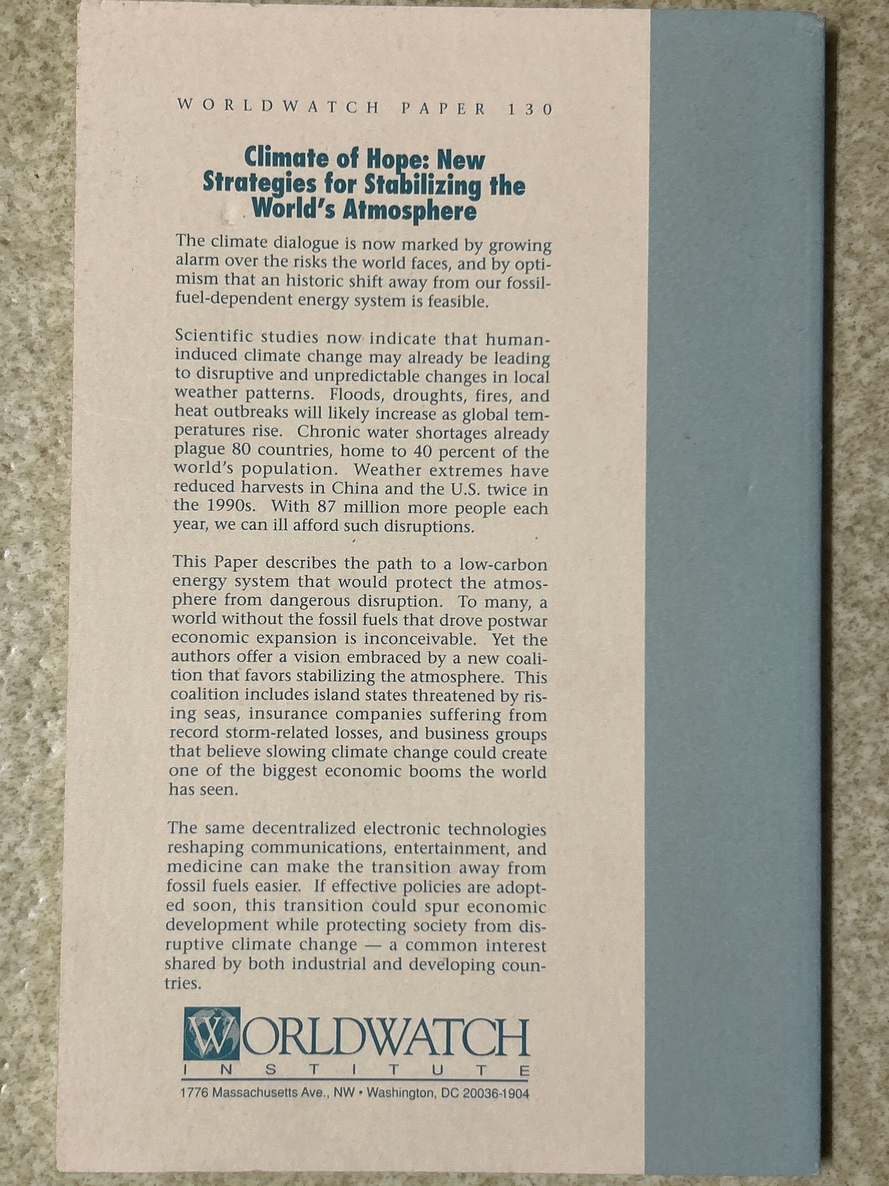 Climate of Hope: New Strategies for Stabilizing the World’s Atmosphere. (Worldwatch Paper 130)(PB) /FLAVIN・TUNALI〈90982〉
