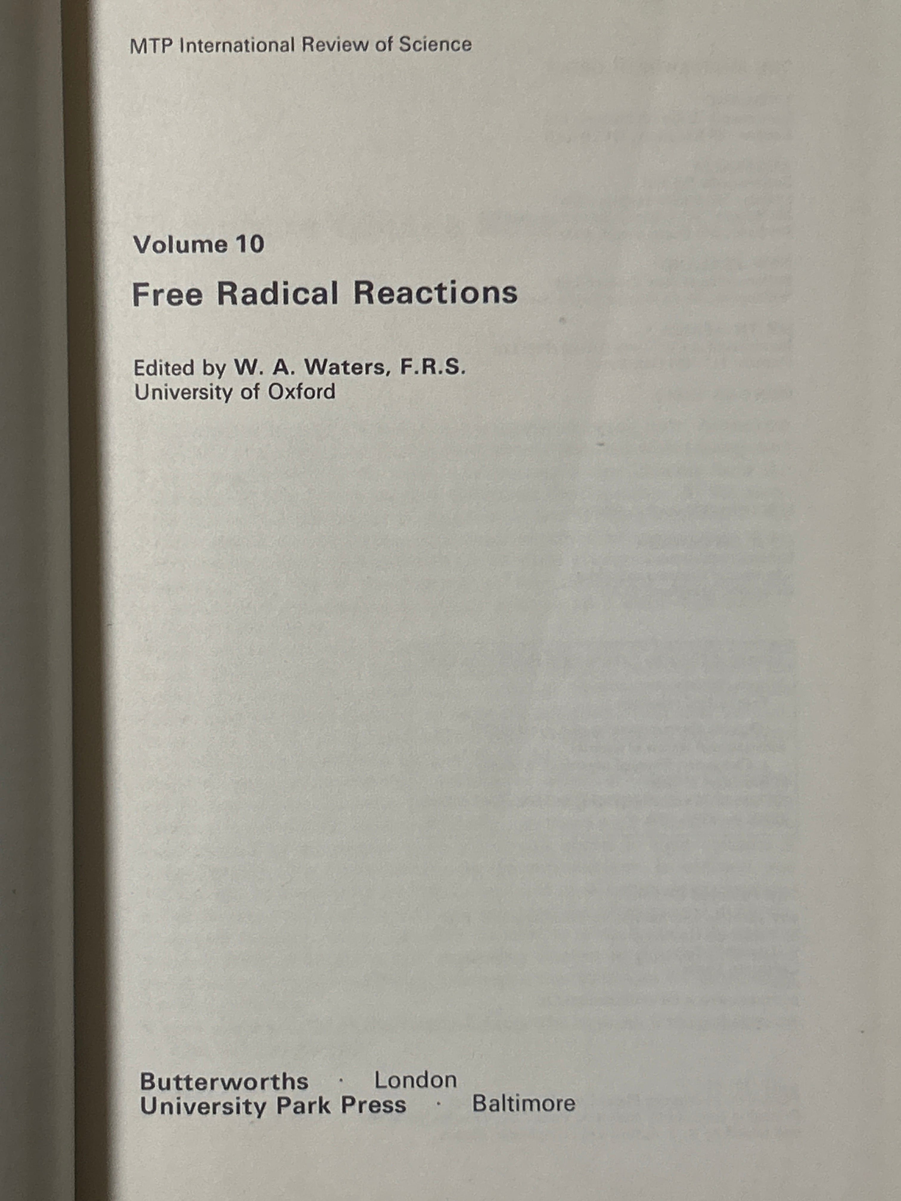 Free Radical Reactions. (Organic Chemistry; Series One; Vol.10)(MTP International Review of Science) /WATERS(W.A)〈32638〉 | 四方堂書店