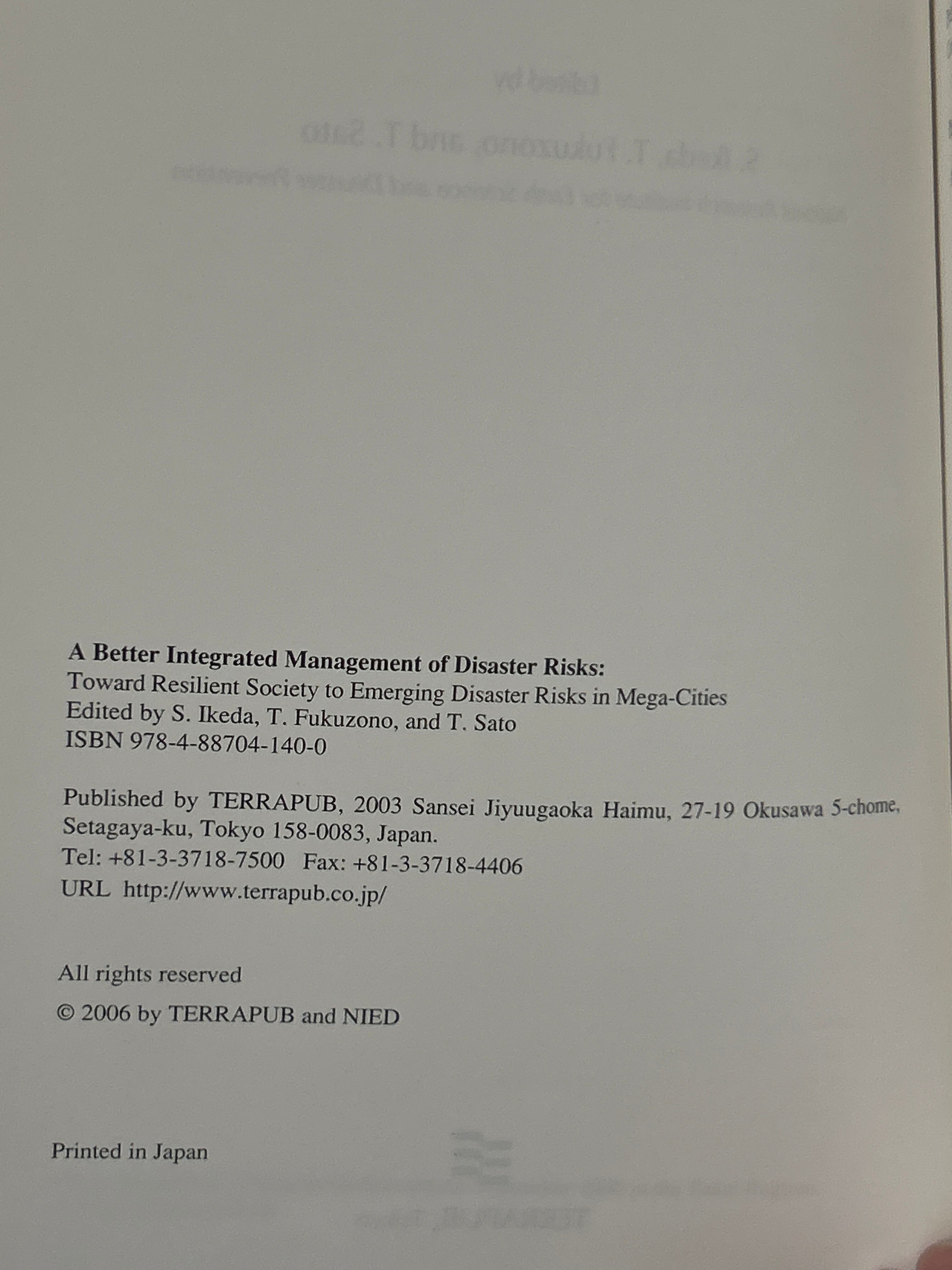 A Better Integrated Management of Disaster Risks: Toward Resilient Society to Emerging Disaster Risks in Mega-Cities. /Ikeda・Fukuzono他〈48896〉