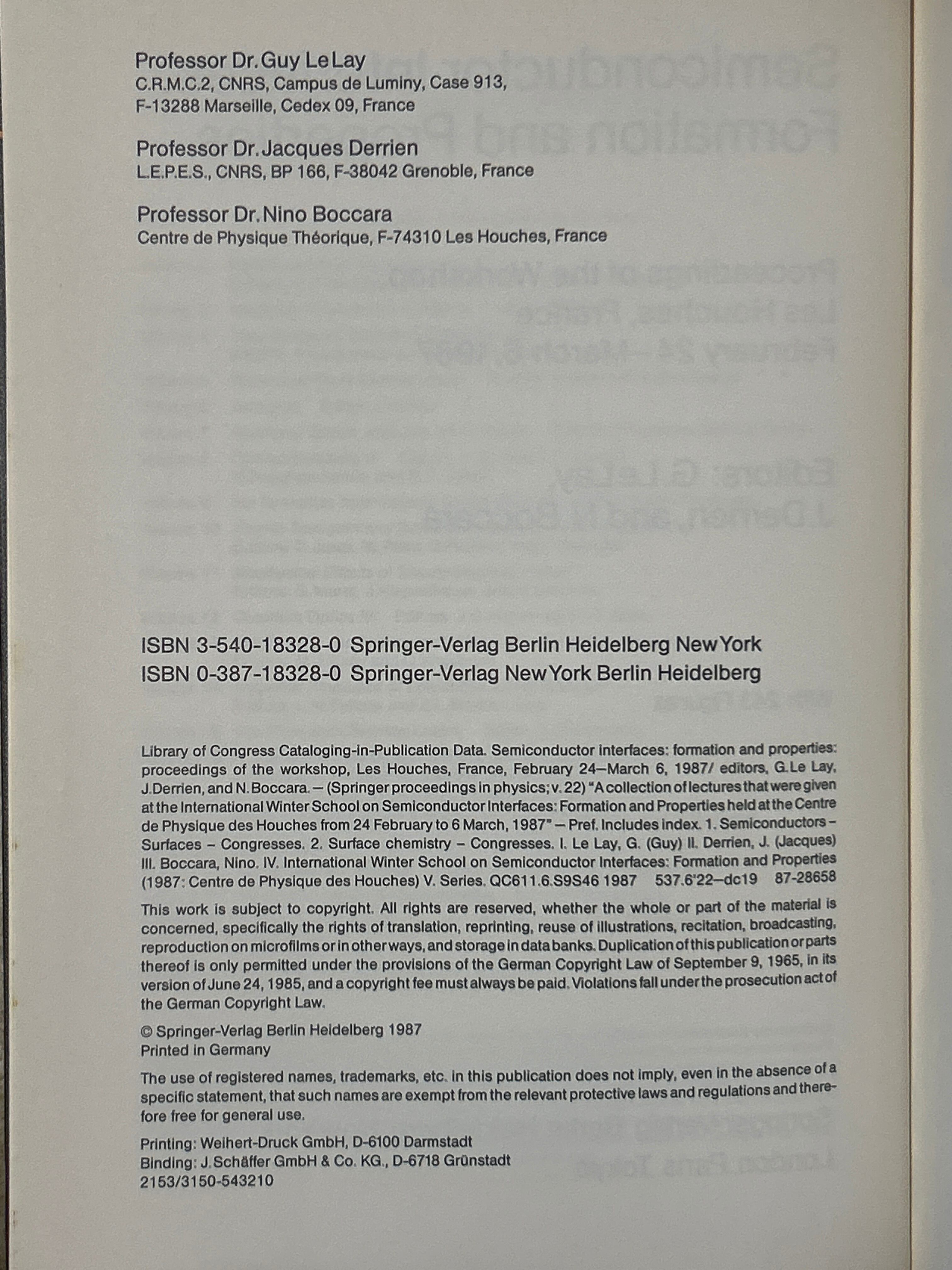 Semiconductor Interfaces: Formation and Properties. (Springer Proceedings in Physics 22) /Le LAY・DERRIEN他〈31325〉