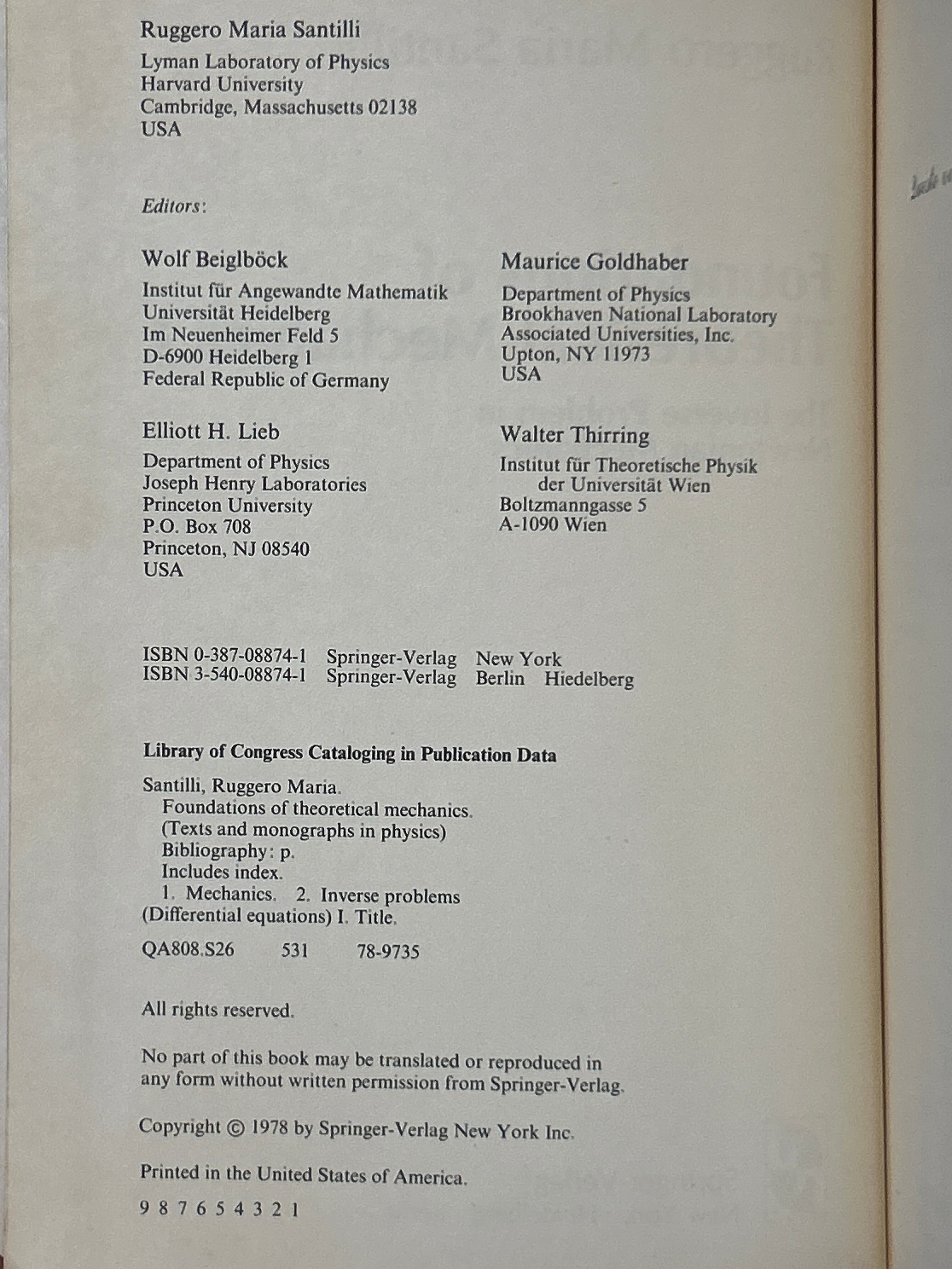 Foundations of Theoretical Mechanics. 2Vols. (Texts and Monographs in Physics) /SANTILLI(R.M)〈36776〉
