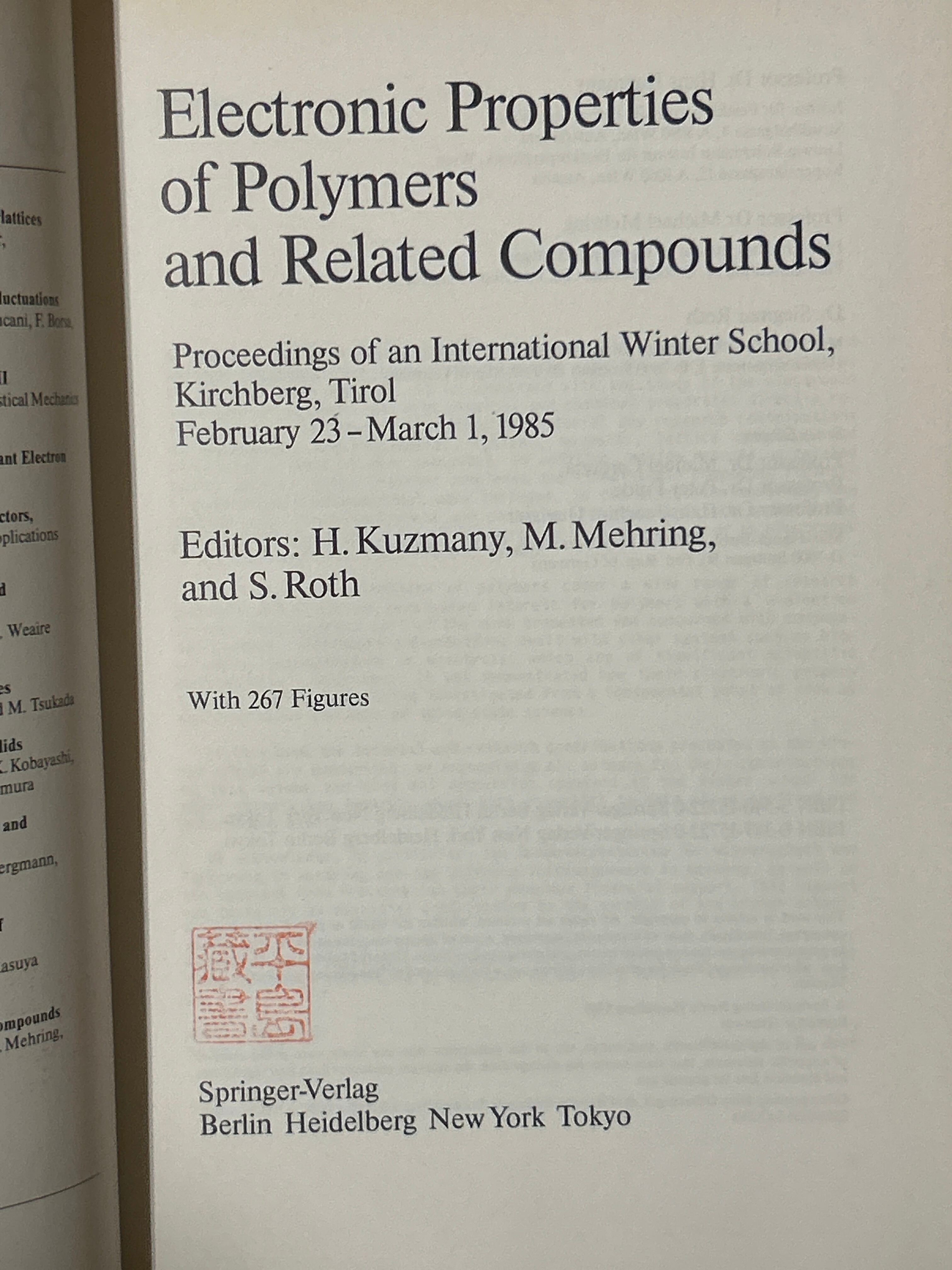Electronic Properties of Polymers and Related Compounds: Proceedings of an International Winter School; Kirchberg; Tirol; 1985. (Springer Series in Solid-State Sciences 63) /KUZMANY・MEHRING他〈41315〉
