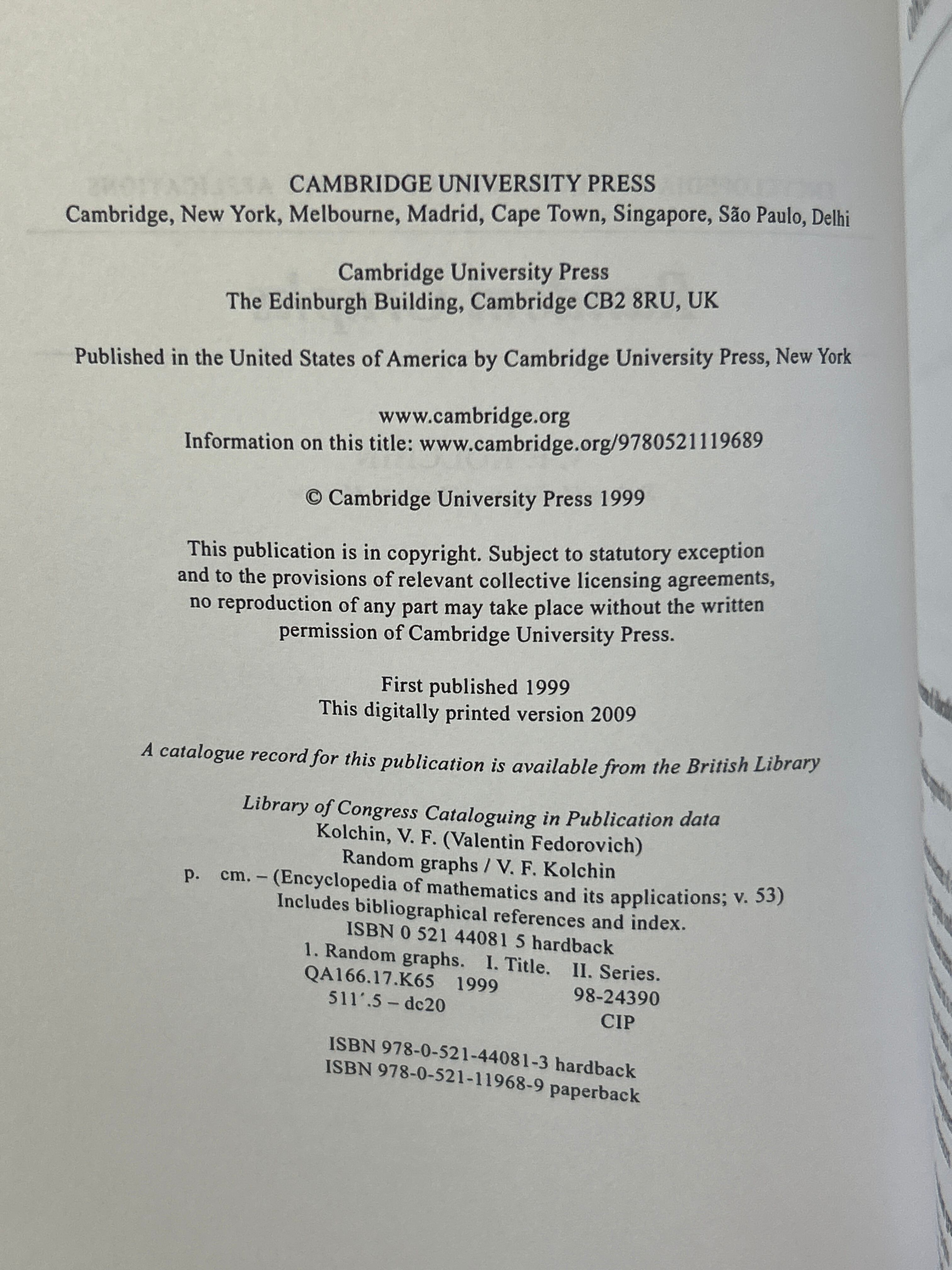 V.F.KOLCHIN Cambridge 252P 2009年(ペーパーバック・24cm)