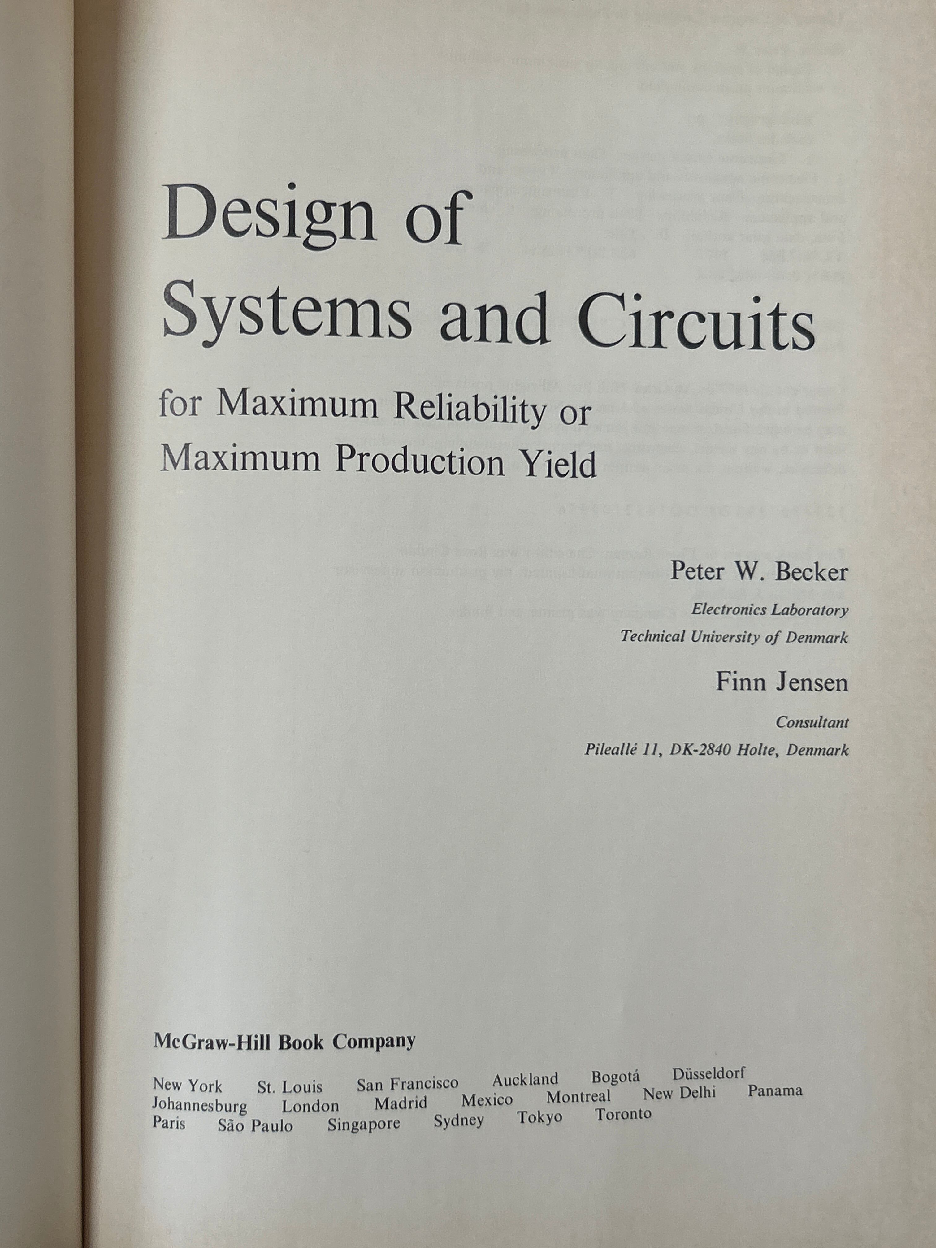 Design of Systems and Circuits for Maximum Reliability or Maximum Production Yield. /BECKER・JENSEN〈90777〉
