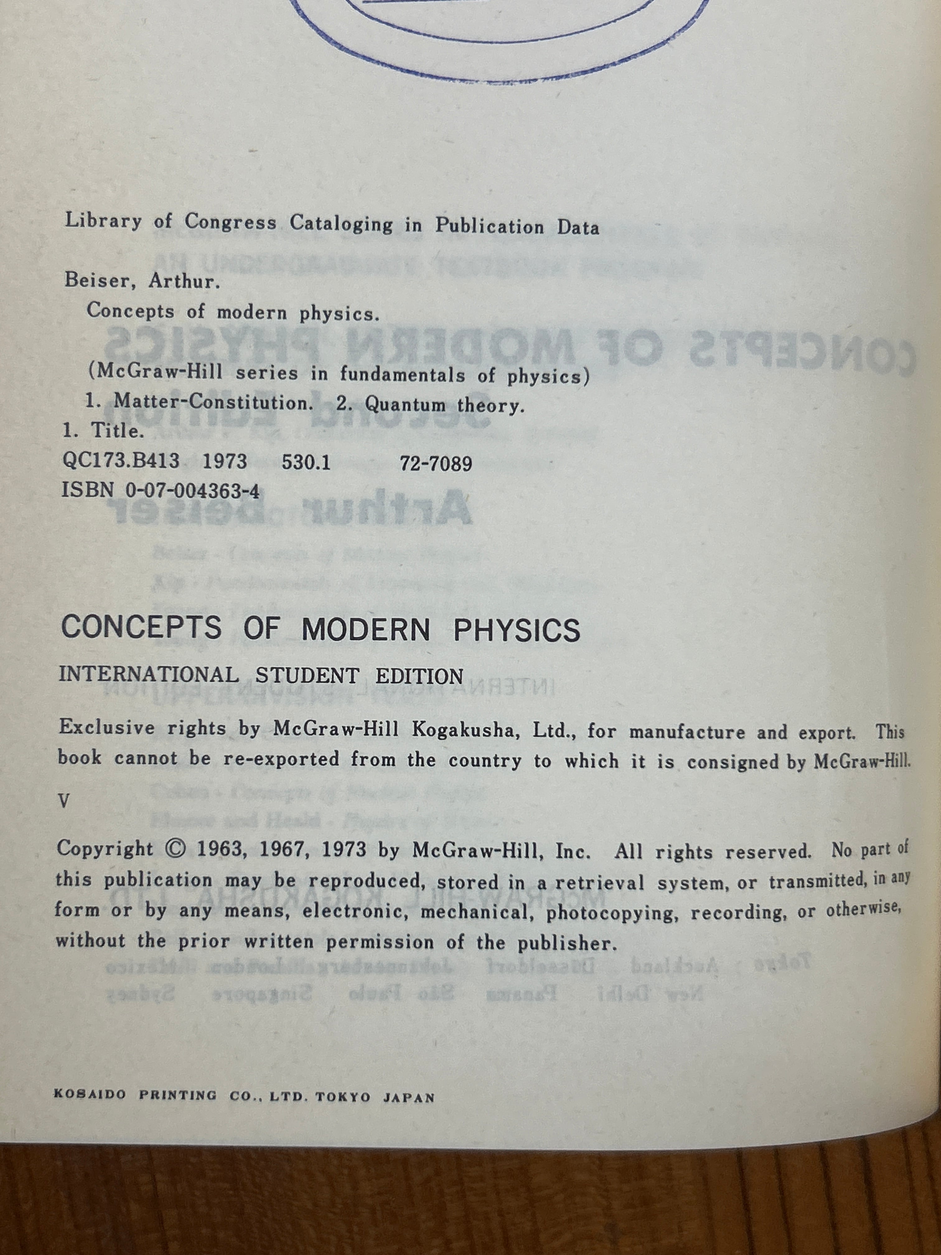 A.BEISER McGraw/Kogakusha 467P 1973年(ペーパーバック・21cm)